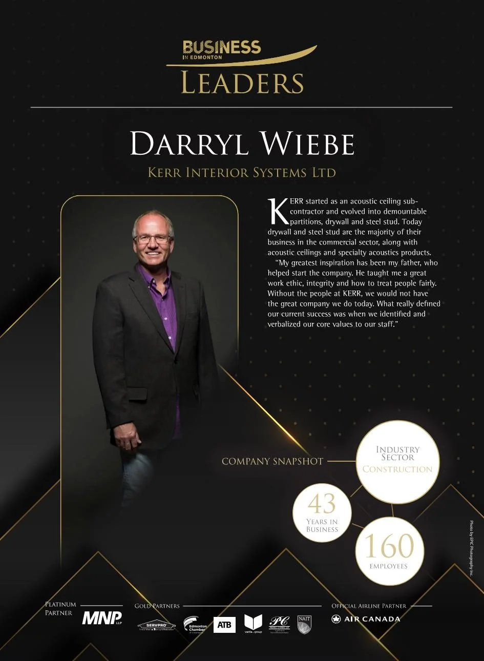 Darryl was awarded as one of the top 20 Business leaders in Edmonton 2021.